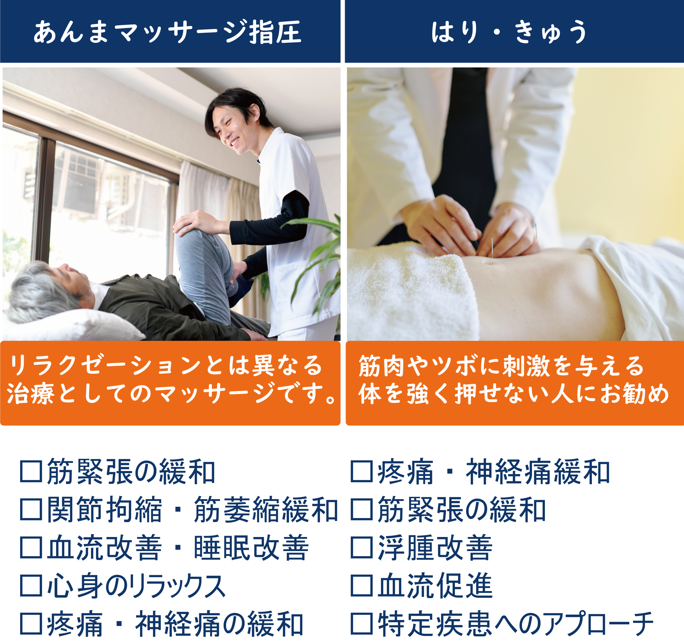 筋緊張の改善・血流改善を基礎に東洋医学アプローチを軸に施術させて頂いております。お薬で改善されないお体の症状や倦怠感の改善に実績があります。